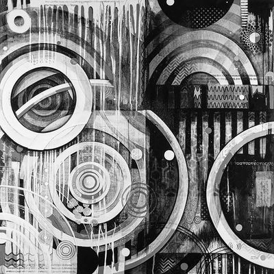 The more I found out, the more I wanted to know, and of course, paint. Black and white seemed entirely appropriate to expressing my response to the polarities within Hermetic thinking, but I decided to include the myriad shades of grey in between, to bring in more nuances and contemporary consideration.